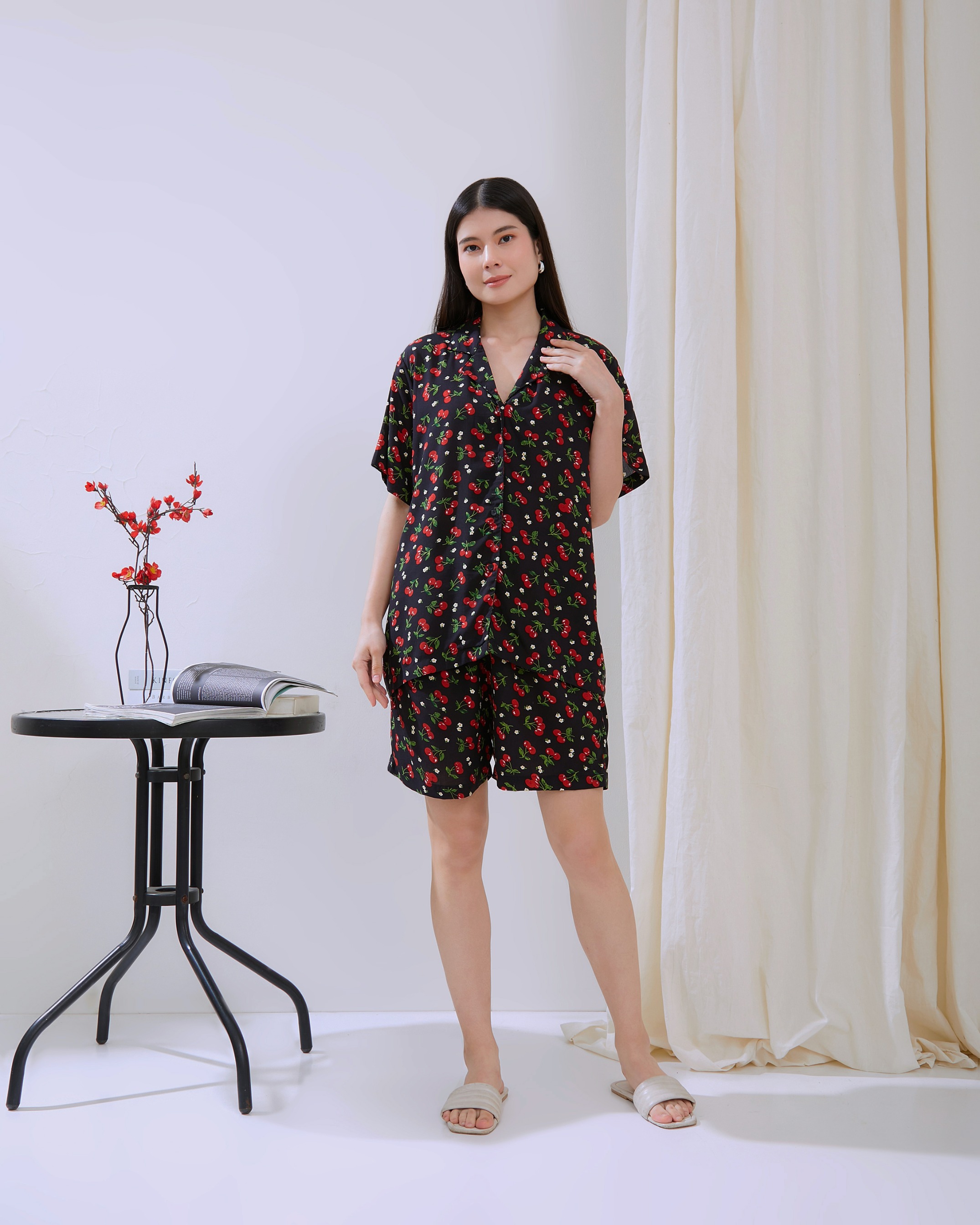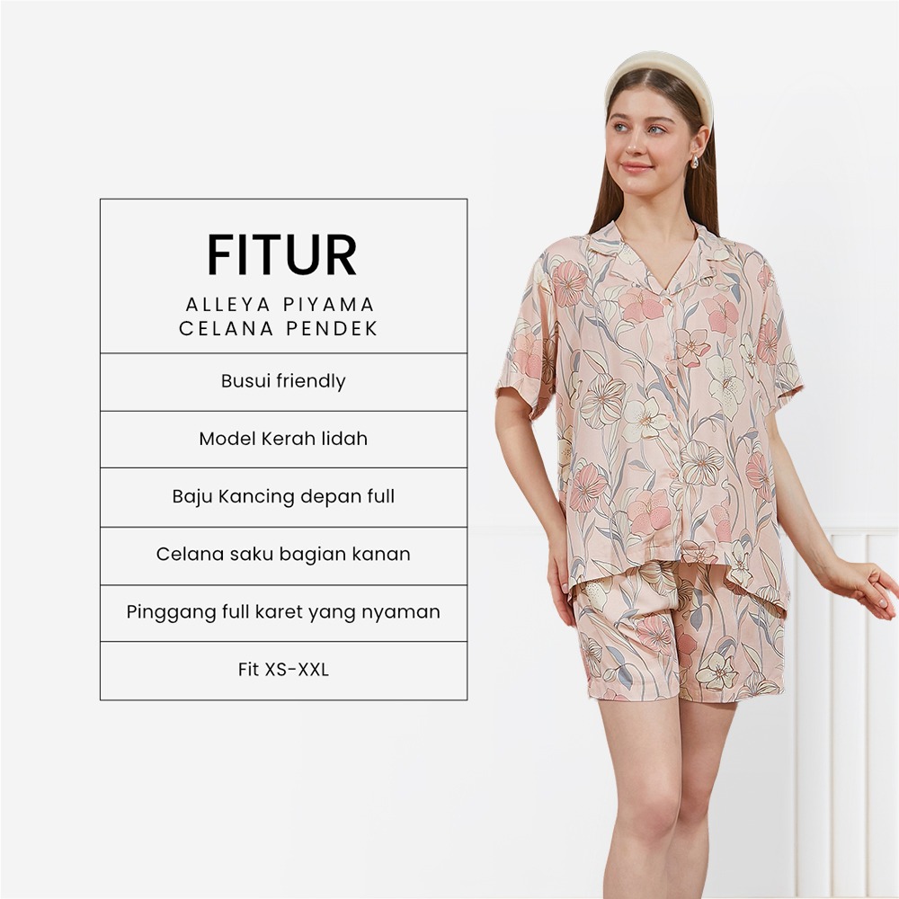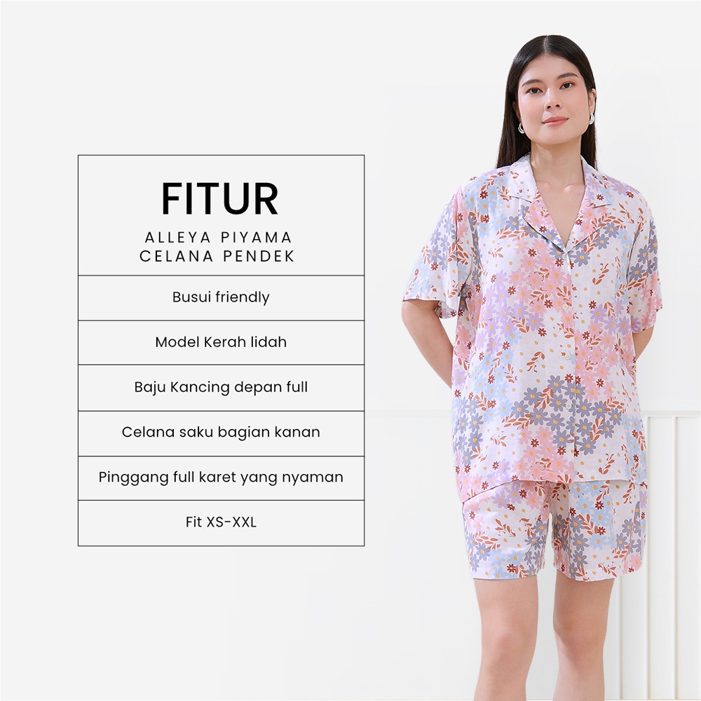 Alleya Piyama Set Celana Pendek - DYD Label - One Set Bahan Rayon