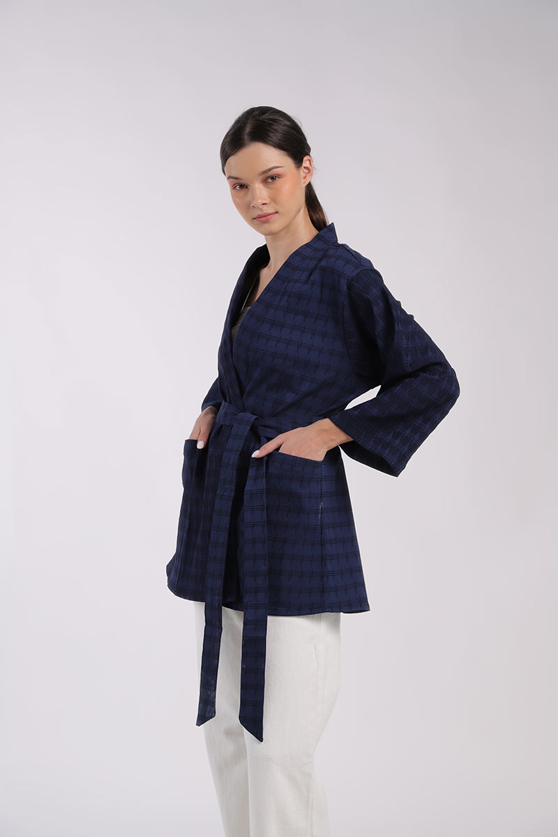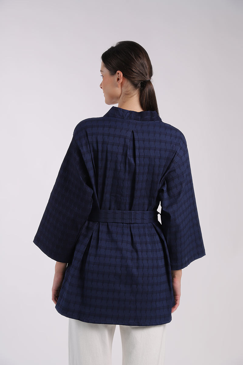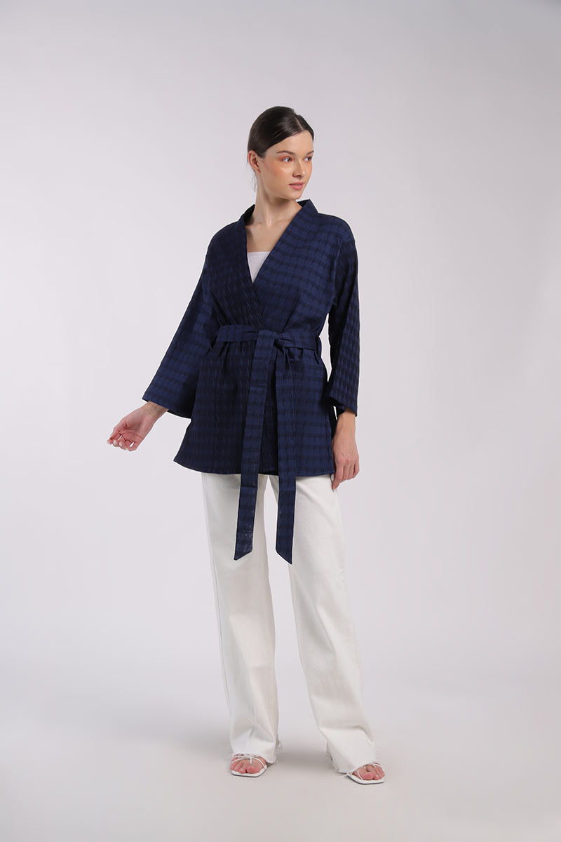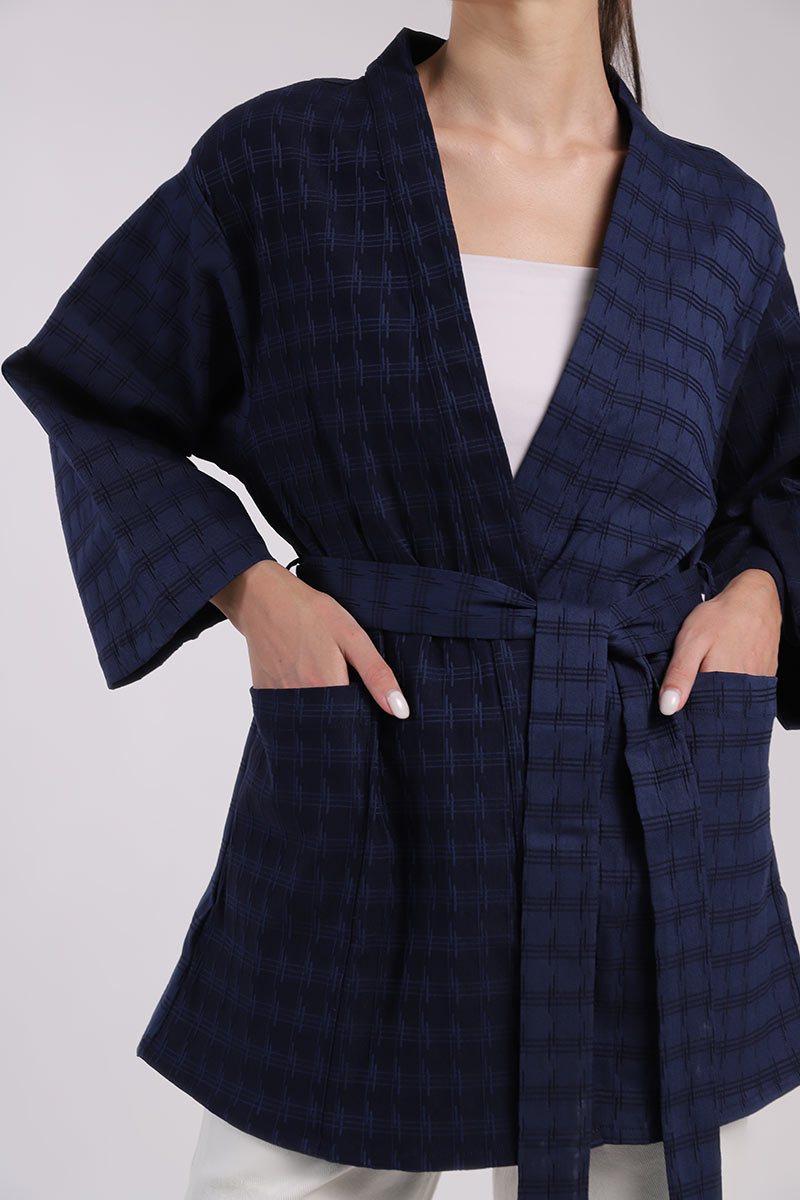 Havana Jaquard Kimono Outer Dark Blue